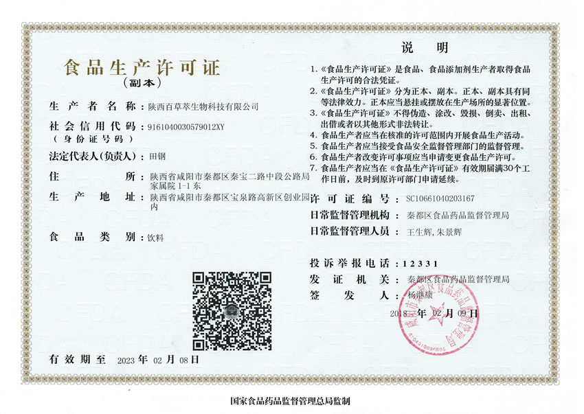 本公司現(xiàn)已與多所科研院緊密合作,公司擁有配套完整的提取、分離、萃取、柱層析、濃縮干燥等設(shè)備和技術(shù),具有豐富的生產(chǎn)天然植物提取物的經(jīng)驗(yàn)和嚴(yán)格的質(zhì)量控制體系。陜西百草萃生物科技有限公司為廣大消費(fèi)著和客戶提供安全、健康、品質(zhì)高、能效強(qiáng)的營(yíng)養(yǎng)健康品,主營(yíng)產(chǎn)品包括:國(guó)食健字鋅硒寶、鋅硒寶、欣寶兒童鋅硒寶、復(fù)合鋅硒片、復(fù)合蛋白鋅、千凈顆粒、蛋白乳鐵片、瑪咖復(fù)合片等、廠家占地五十余畝,廠家建筑面積4000余m2,內(nèi)設(shè)生產(chǎn)車(chē)間、質(zhì)量控制室、產(chǎn)品檢測(cè)中心、陰涼倉(cāng)庫(kù)、..